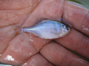 ニッポンバラタナゴの数は、マークをした個体を再度捕獲することで推算しますが