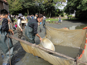 今回は、畑での活動とふれあい池でのドビ流しです。