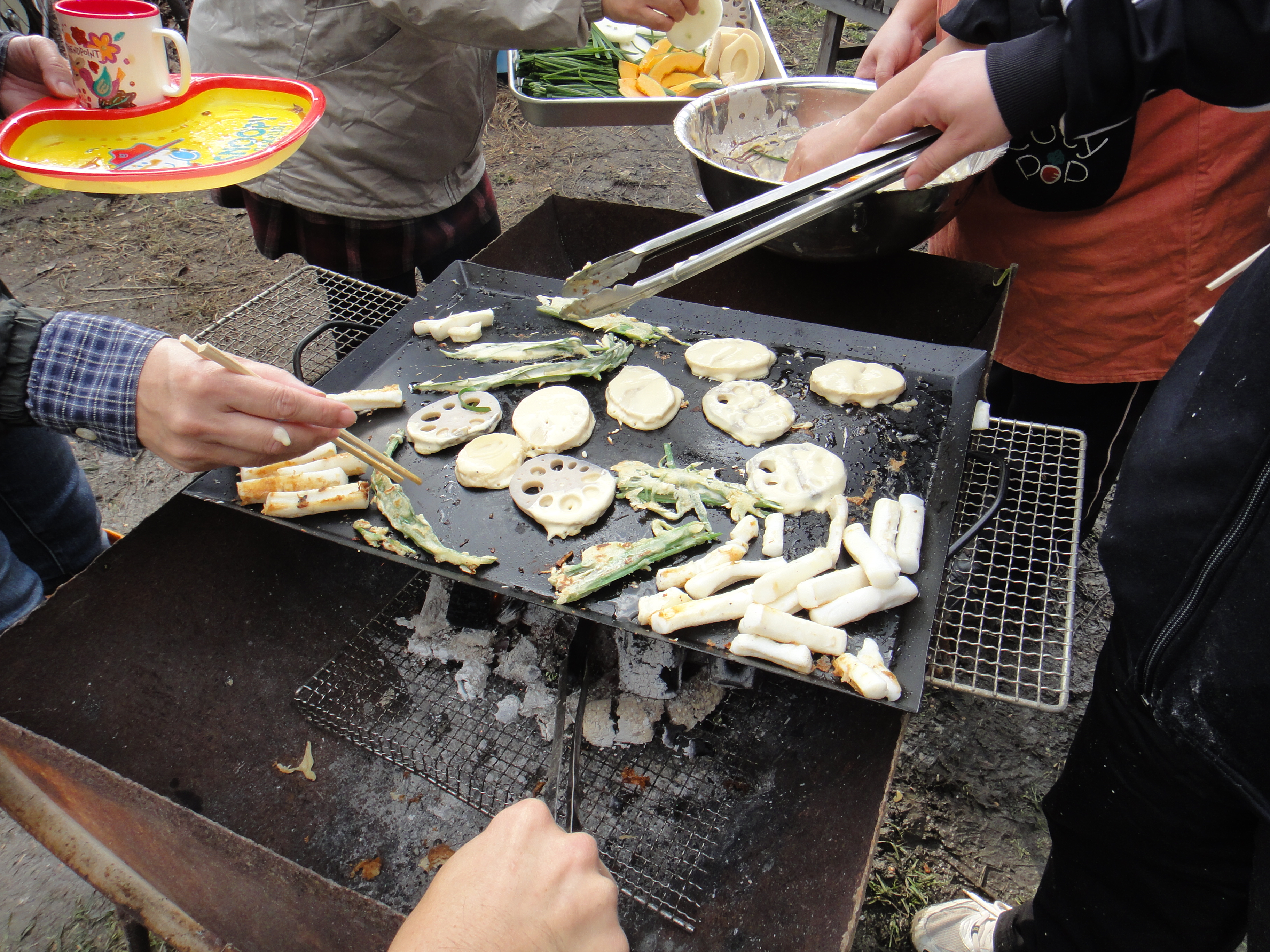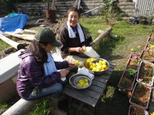 メニューは、畑で採れたゆずを使ったゆずポン酢とチヂミでした。