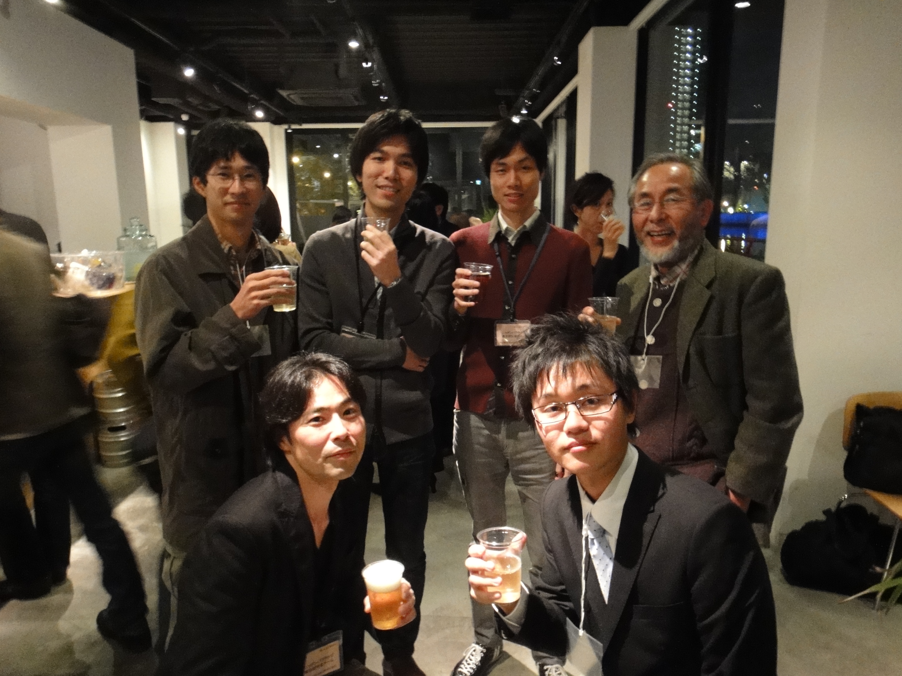 発表会の後は、お楽しみの交流会。お酒を飲みながら立食パーティーです。