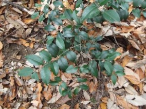 冬でも常緑樹は葉っぱがあります。これはモクセイ科のネズミモチ。