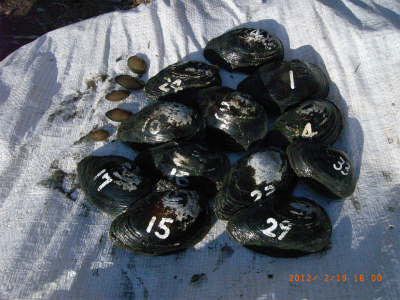 ファームにある池の中のドブガイです。