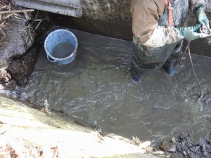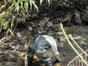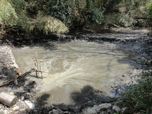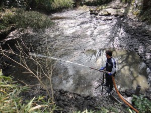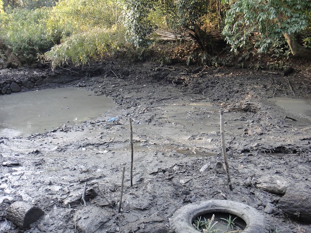 3月末にタナゴやヨシノボリを採集し、底樋を抜いたA池ですが、今日はいよいよ溜まったヘドロの