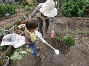 小さな体と同じくらいの大きさの如雨露を使って野菜たちに水遣りをしてくれました。