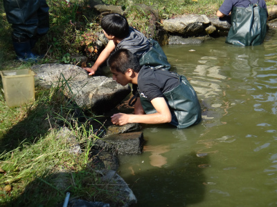 ドブガイを採っています。